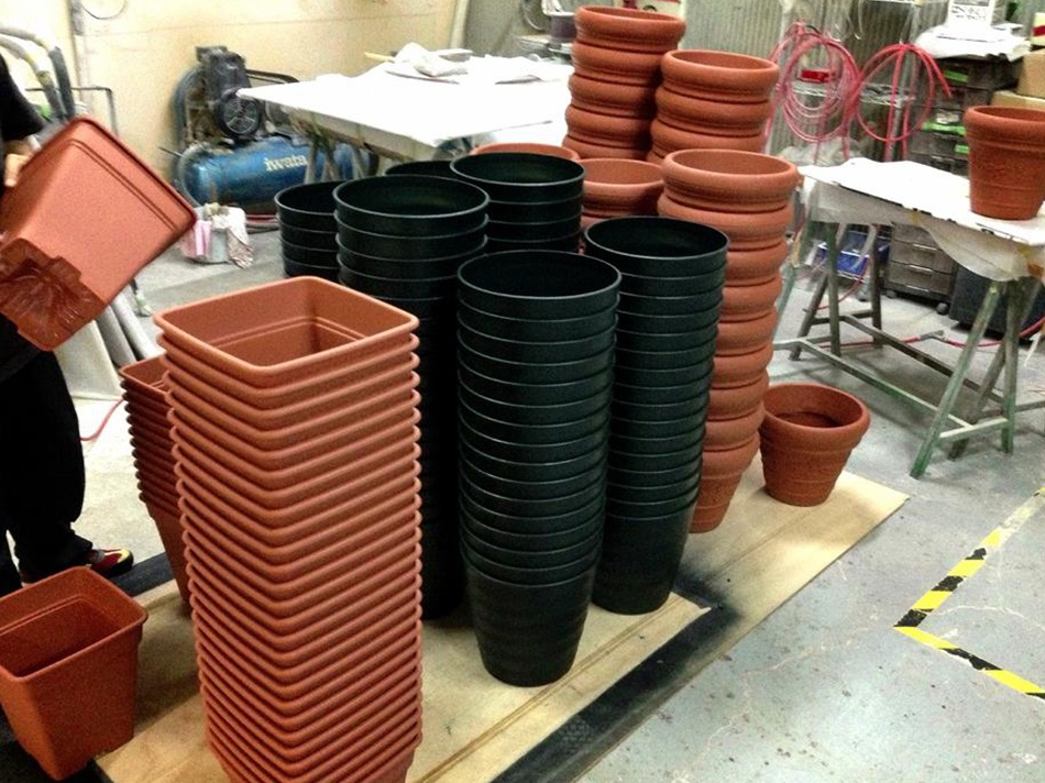 | 塗装前のプランターです。 | 塗装後のプランターです。 |