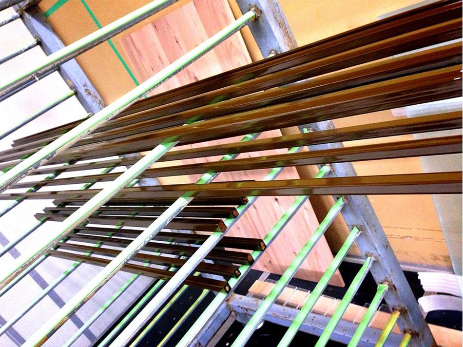 | 塗装前のスチール材です。 | 塗装後のスチール材です。 |
