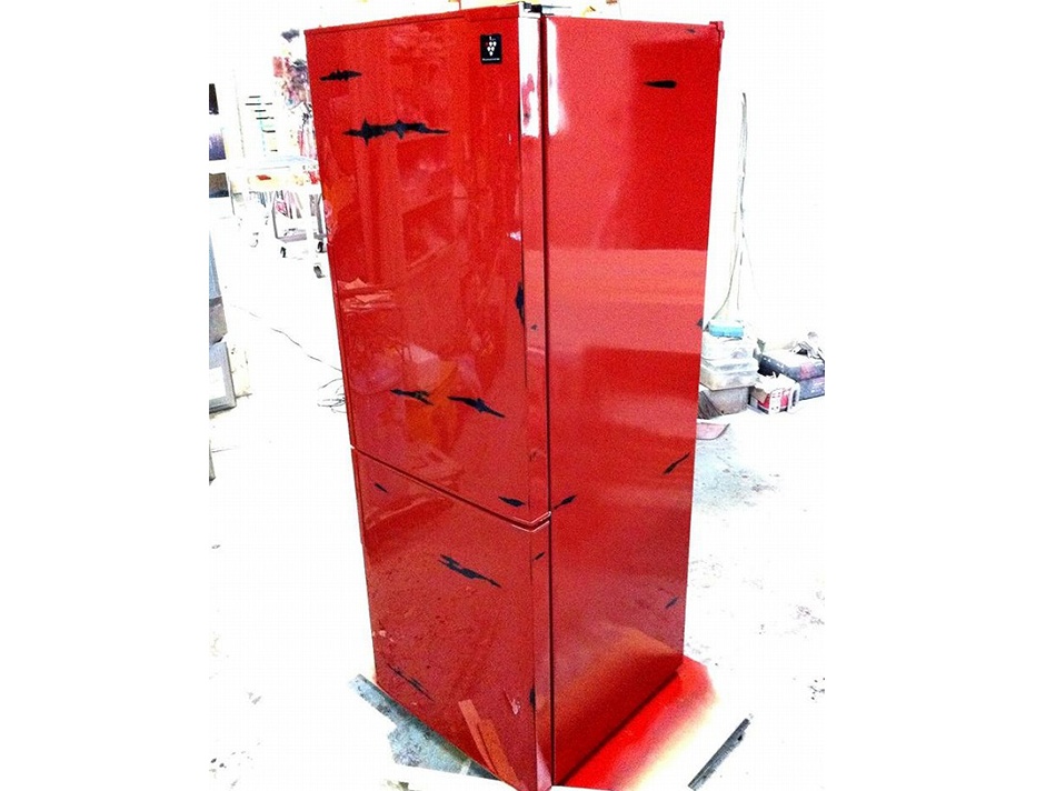| 塗装前の冷蔵庫です。 | 塗装後の冷蔵庫です。 |