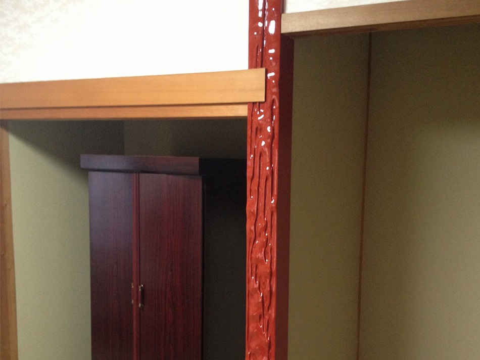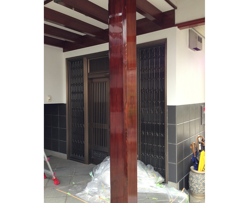 | 塗装前の床柱です。 | 塗装後の床柱です。 |