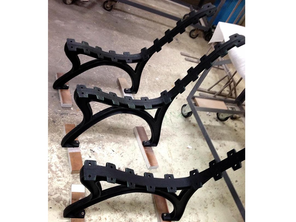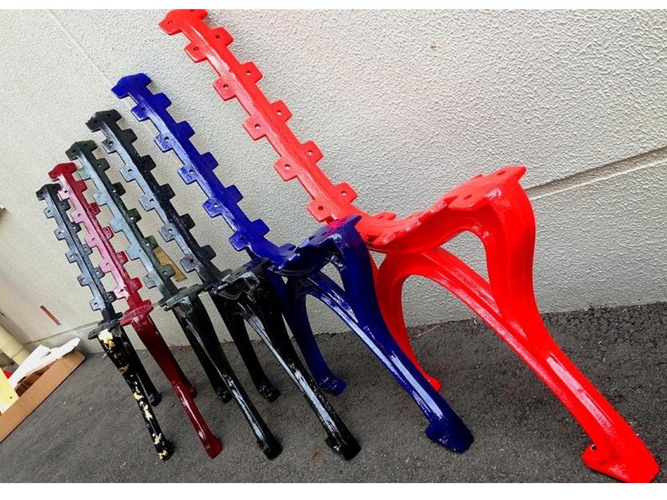 | 塗装前のベンチ脚です。 | 塗装後のベンチ脚です。 |