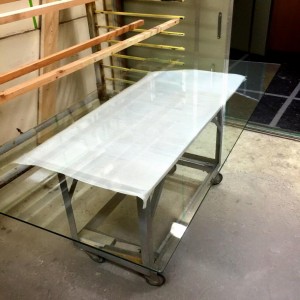 ステンドガラステーブル 漆塗り