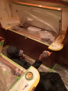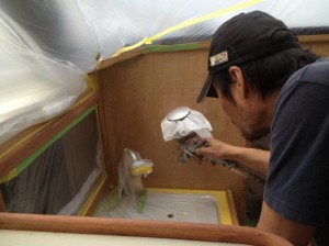 クルーザー内装家具塗装 山場を迎えてます。