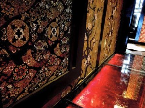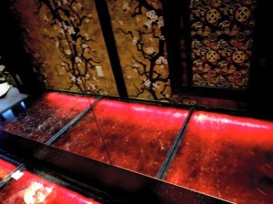 ステンドガラステーブル 漆塗り