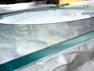 丸型ガラス天板 漆技塗装